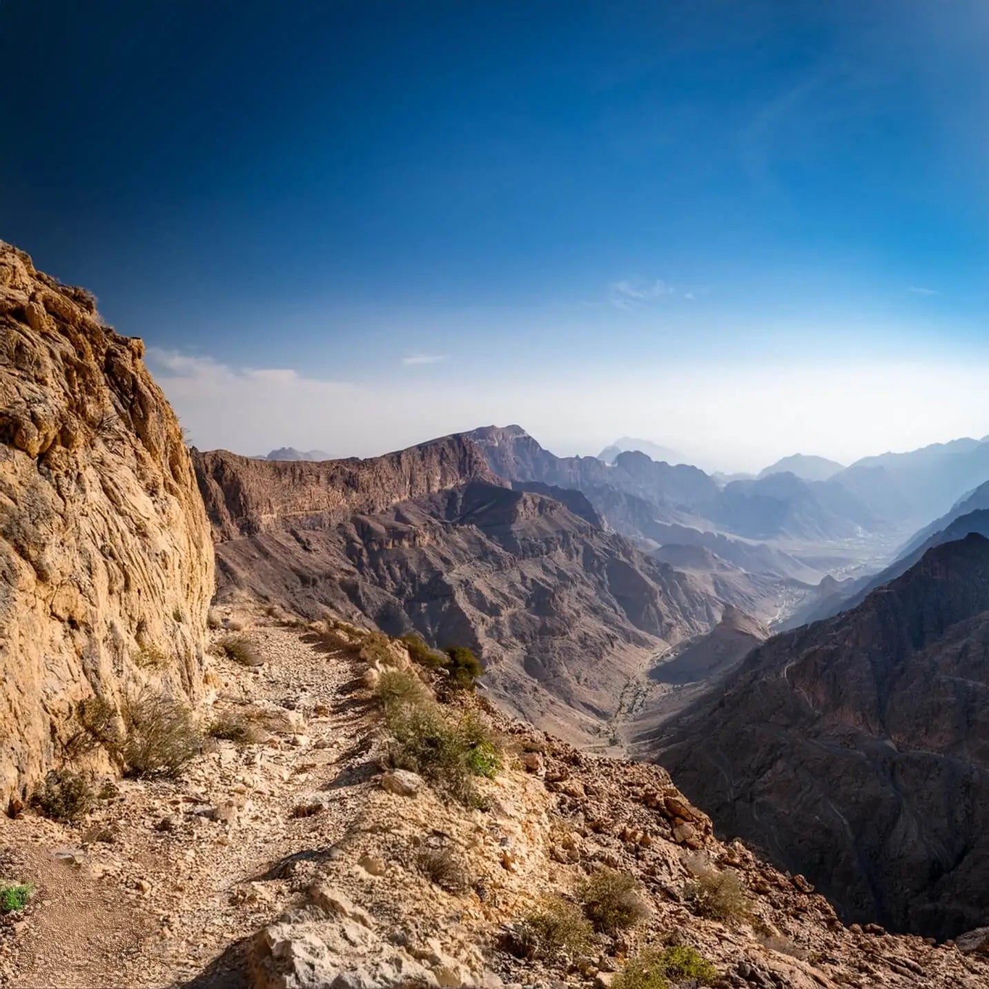 Heute erwartet Sie ein Highlight: der berühmte Balcony Walk am Jebel Shams. Diese moderate Wanderung entlang des spektakulären Canyons bietet unvergessliche Ausblicke. Am Nachmittag erkunden Sie das historische Lehmziegeldorf Al Hamra. Danach Rückfahrt nach Muscat, wo Sie Ihren letzten Abend entspannt ausklingen lassen können.